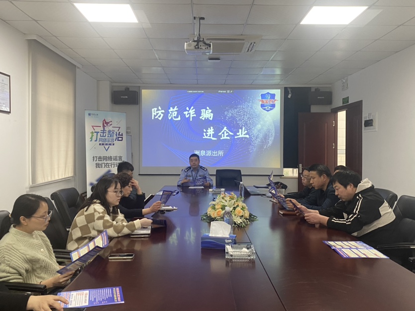 為深入推進打擊整治網絡謠言專項行動,堅決維護網絡公共秩序和群眾合法權益,有效凈化網絡環境,全力維護網絡空間秩序,3月23日下午,桐鄉市公安局洲泉派出所民警來訪浙江土畜凱興畜產有限公司開展打擊整治網絡謠言和防范電信網絡詐騙宣講活動。