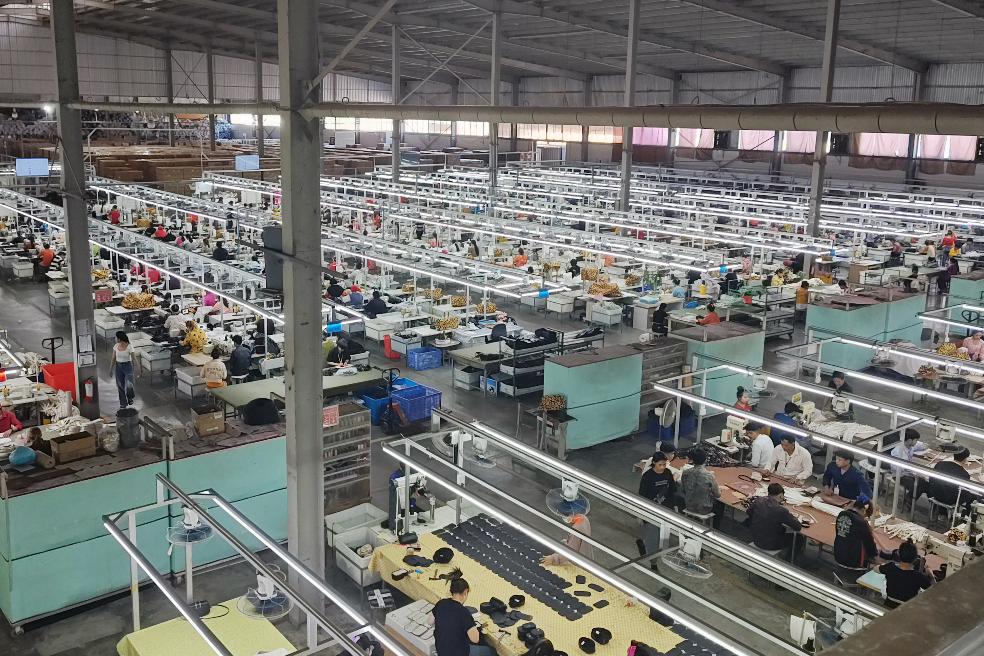 (浙江土畜箱包經(jīng)營團(tuán)隊柬埔寨工廠生產(chǎn)車間)