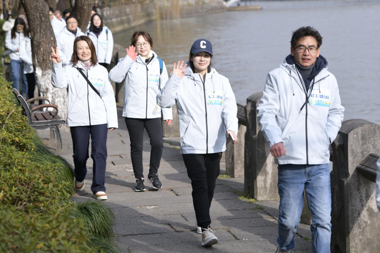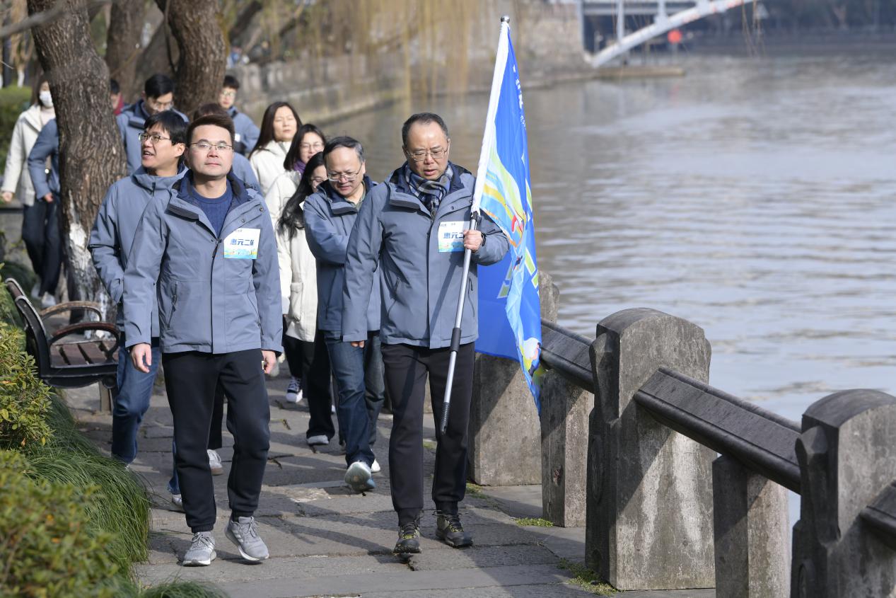 毅行活動開啟了浙江土畜接續奮斗的全新征程。當日上午,陽光明媚,春和景明。隊員們精神飽滿、熱情高漲,以積極的狀態投入活動中。伴隨著“出發”的槍聲,毅行活動正式啟動。大家斗志昂揚、步履矯健,從浙江土畜舊址米市巷出發,沿著京杭大運河西岸一路向南進發,途徑公司第二個辦公舊址——浙江經貿大樓,最終抵達公司現址中大廣場——浙江土畜總部所在地,全程超過4公里。
