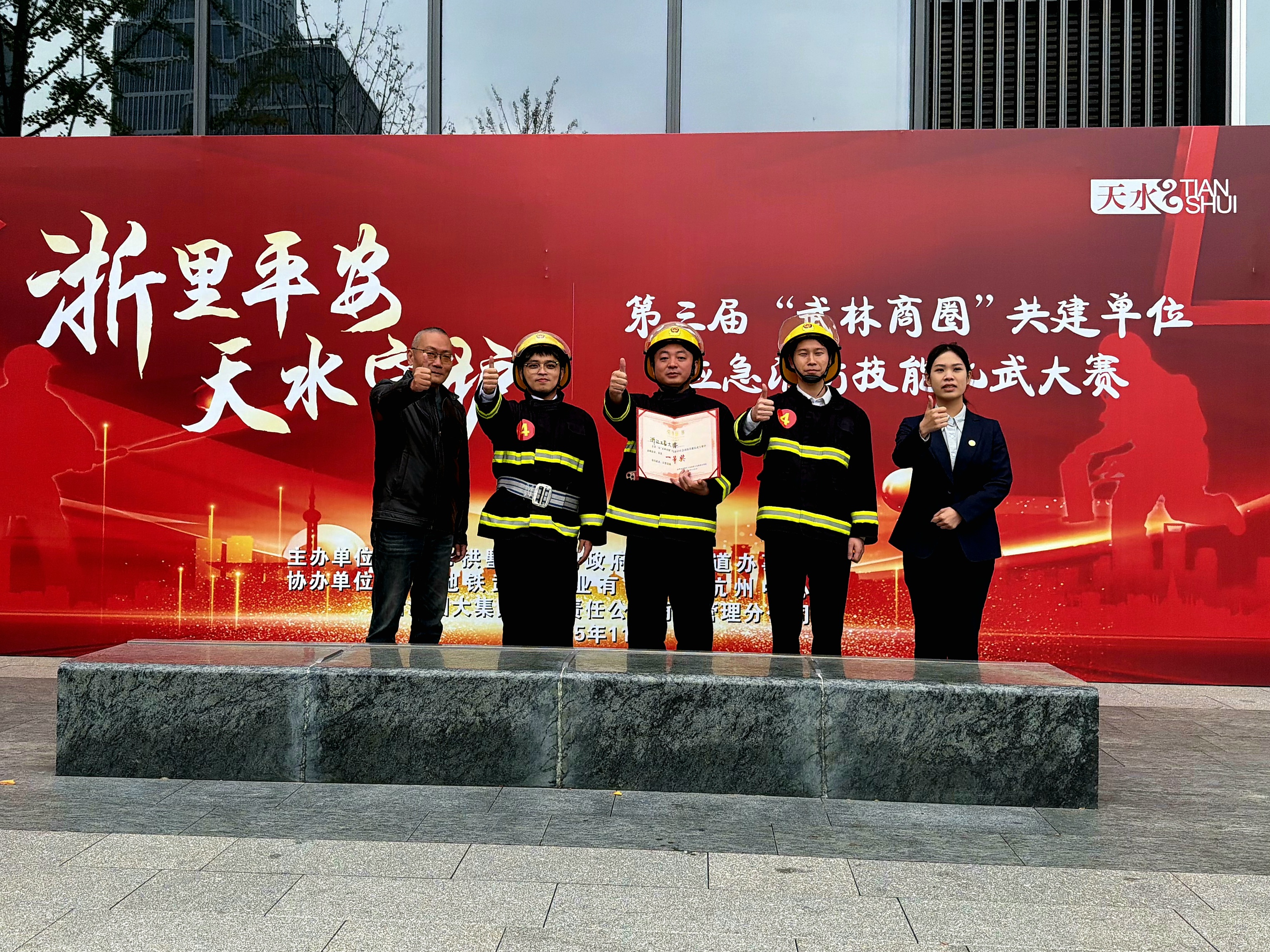 公司大樓微型消防站積極參加第三屆“武林商圈”共建單位應(yīng)急消防技能比武大賽,參賽隊(duì)員憑借扎實(shí)的消防業(yè)務(wù)知識(shí)、熟練的應(yīng)急處置技能和默契的團(tuán)隊(duì)協(xié)作,最終榮獲一等獎(jiǎng)。此次比武展現(xiàn)了公司微型消防站與街道應(yīng)急消防站長期聯(lián)勤聯(lián)訓(xùn)的良好效果,體現(xiàn)了公司微型消防站隊(duì)伍的過硬素質(zhì),為公司大樓消防安全筑牢了堅(jiān)實(shí)的屏障。