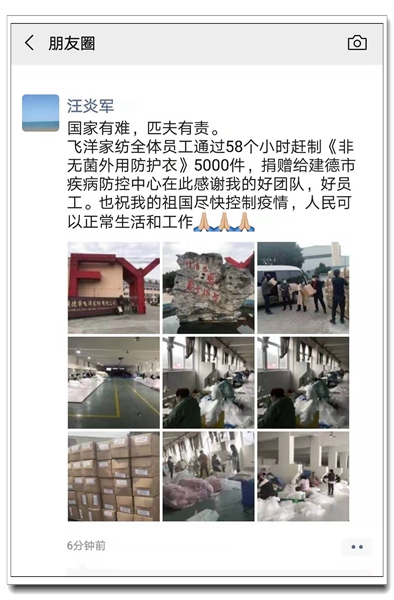 飛洋家紡總經(jīng)理汪炎軍的朋友圈
