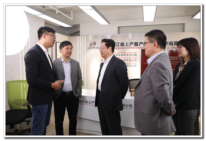 10月20日,浙江省商務(wù)廳黨組副書記、副廳長、一級巡視員韓杰蒞臨省土畜,走訪調(diào)研今年公司經(jīng)營情況、第128屆網(wǎng)上廣交會(huì)參展情況,省國貿(mào)集團(tuán)黨委委員、副總經(jīng)理黃道領(lǐng)陪同調(diào)研。省商務(wù)廳對外貿(mào)易發(fā)展處副處長胡興遠(yuǎn),省土畜董事長張斌、總經(jīng)理?xiàng)钴S勝參加。