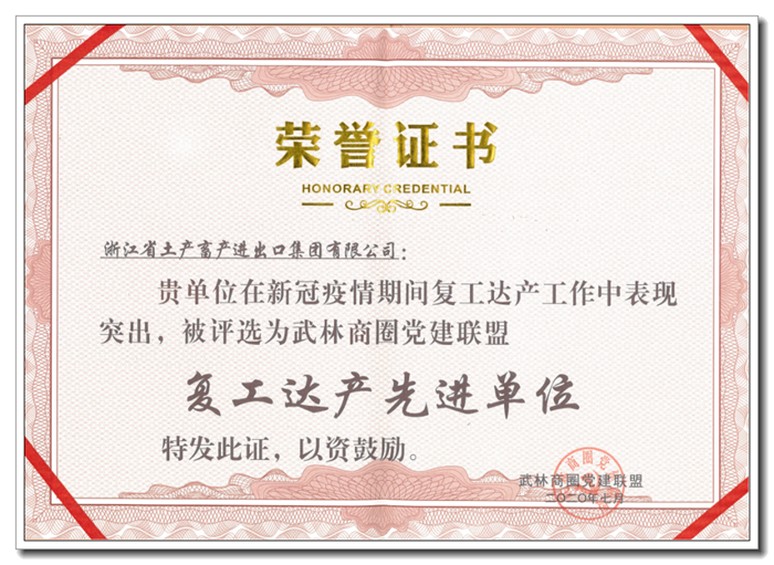 7月15日晚,杭州市武林商圈黨建聯(lián)盟舉行2020年年會,來自聯(lián)盟各成員單位的300余名黨員參加活動。大會表彰了在疫情防控、復工達產、黨建共建方面的模范單位以及在疫情防控工作中表現(xiàn)突出的先進黨員,省土畜被授予“復工達產先進單位”稱號。浙江省商務廳黨組書記、廳長,聯(lián)盟輪值主席盛秋平,杭州市下城區(qū)委書記劉穎出席會議,并為獲得表彰的單位和個人頒發(fā)證書獎杯。