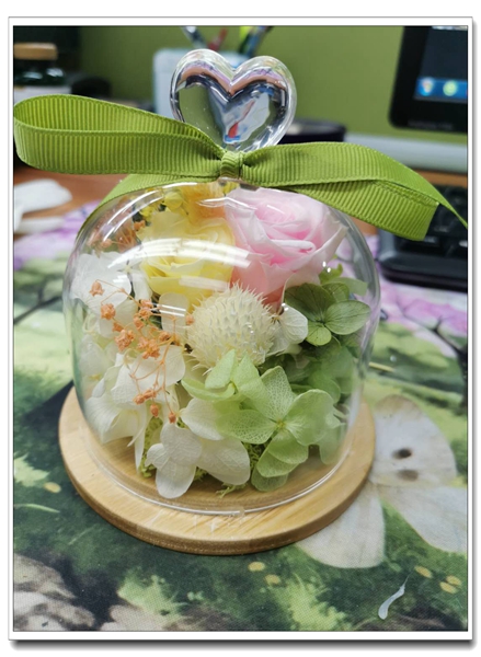 我們再來看看手工作品,永生花。希望是我們心中最為珍貴的東西,我們把春天的花朵裝進瓶子,許下我們最美好的愿望,戰(zhàn)勝疫情,戰(zhàn)勝困難,我們一起努力。