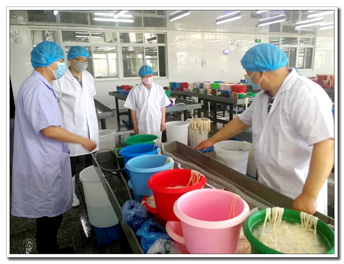 駱總率檢查組先后對廠區(qū)的污水處理中心、配電控制室、集體宿舍、食堂、加工車間等重點部位的設(shè)備設(shè)施運行情況、日常巡查記錄、制度上墻等情況進行了檢查和現(xiàn)場指導(dǎo)。凱興畜產(chǎn)常務(wù)副總經(jīng)理李俊向檢查組詳細匯報了企業(yè)防疫及復(fù)工復(fù)產(chǎn)情況、安全生產(chǎn)管理現(xiàn)狀及節(jié)能減排所取得的成效。