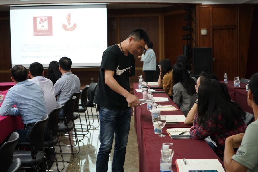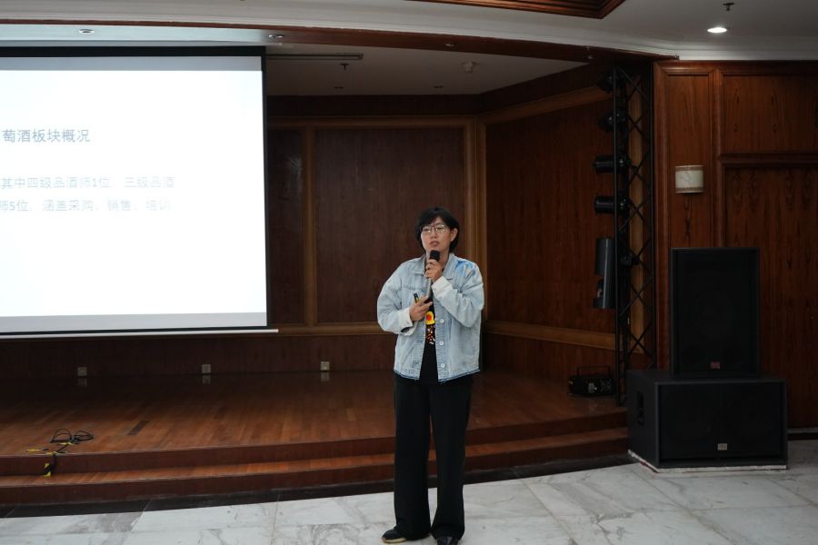 進(jìn)口一部品酒師任杰介紹了浙江土畜紅酒業(yè)務(wù)發(fā)展背景和現(xiàn)有紅酒代理品牌,重點介紹了目前公司代理的奔富和吉哈伯通兩個品牌商,在現(xiàn)場講述了紅酒釀造工藝、全球重點產(chǎn)區(qū)、葡萄酒的類別等知識,并普及了品鑒紅酒常識。