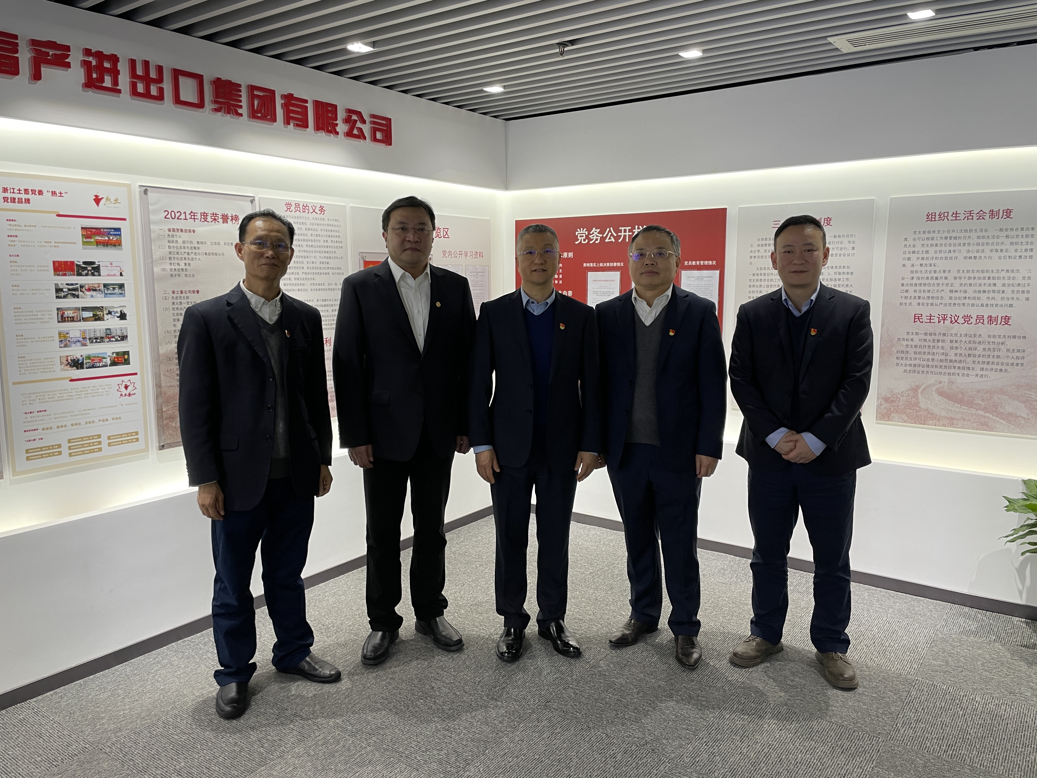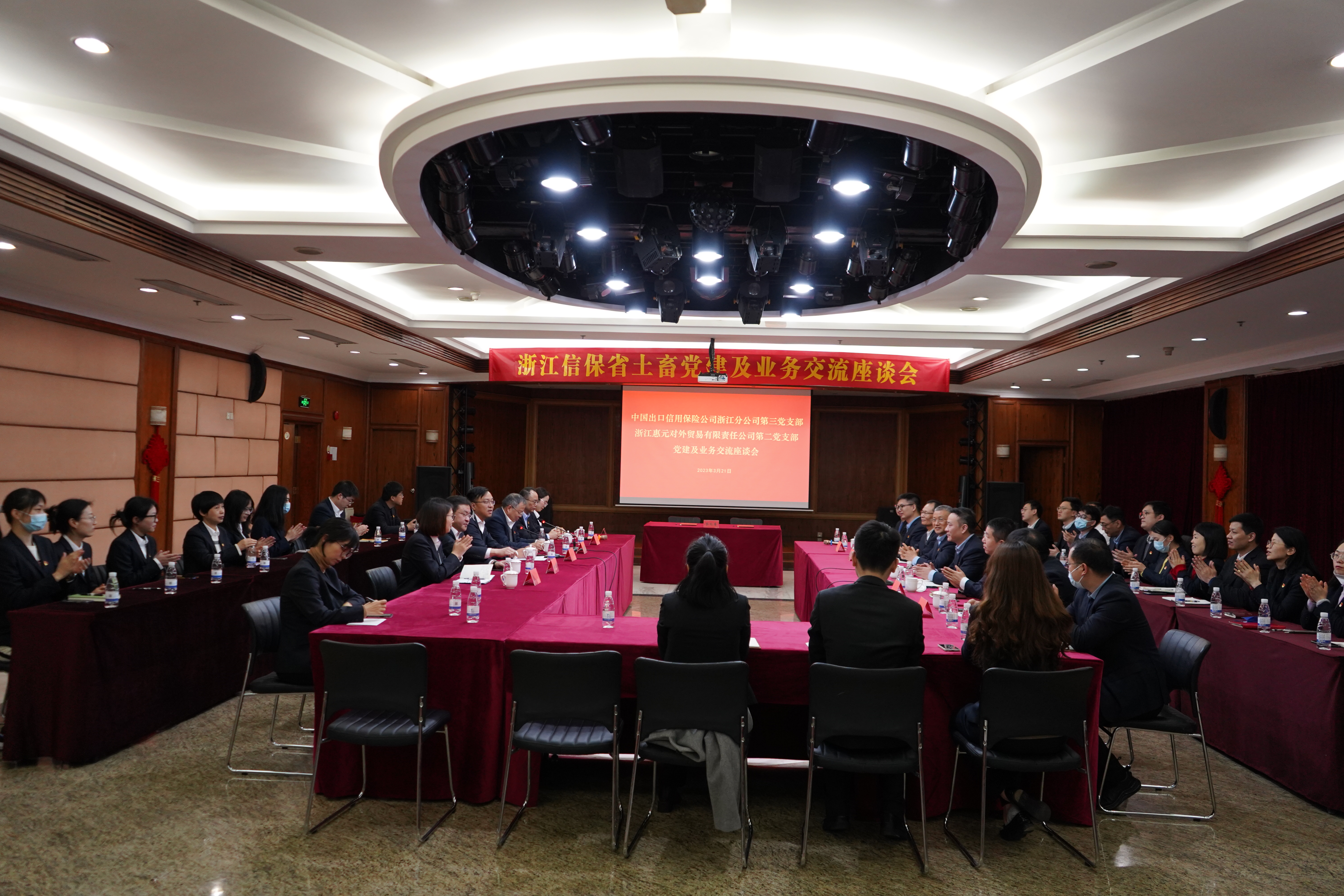 交流座談會上,張斌書記詳細介紹了浙江土畜經(jīng)營概況和黨建工作。他表示,浙江信保是土畜集團多年的合作伙伴,為我司內(nèi)外貿(mào)業(yè)務(wù)發(fā)展保駕護航。此次支部共建有利于深化合作,兩個支部要充分發(fā)揮各自優(yōu)勢,形成互幫互助、聯(lián)合推動的整體合力。