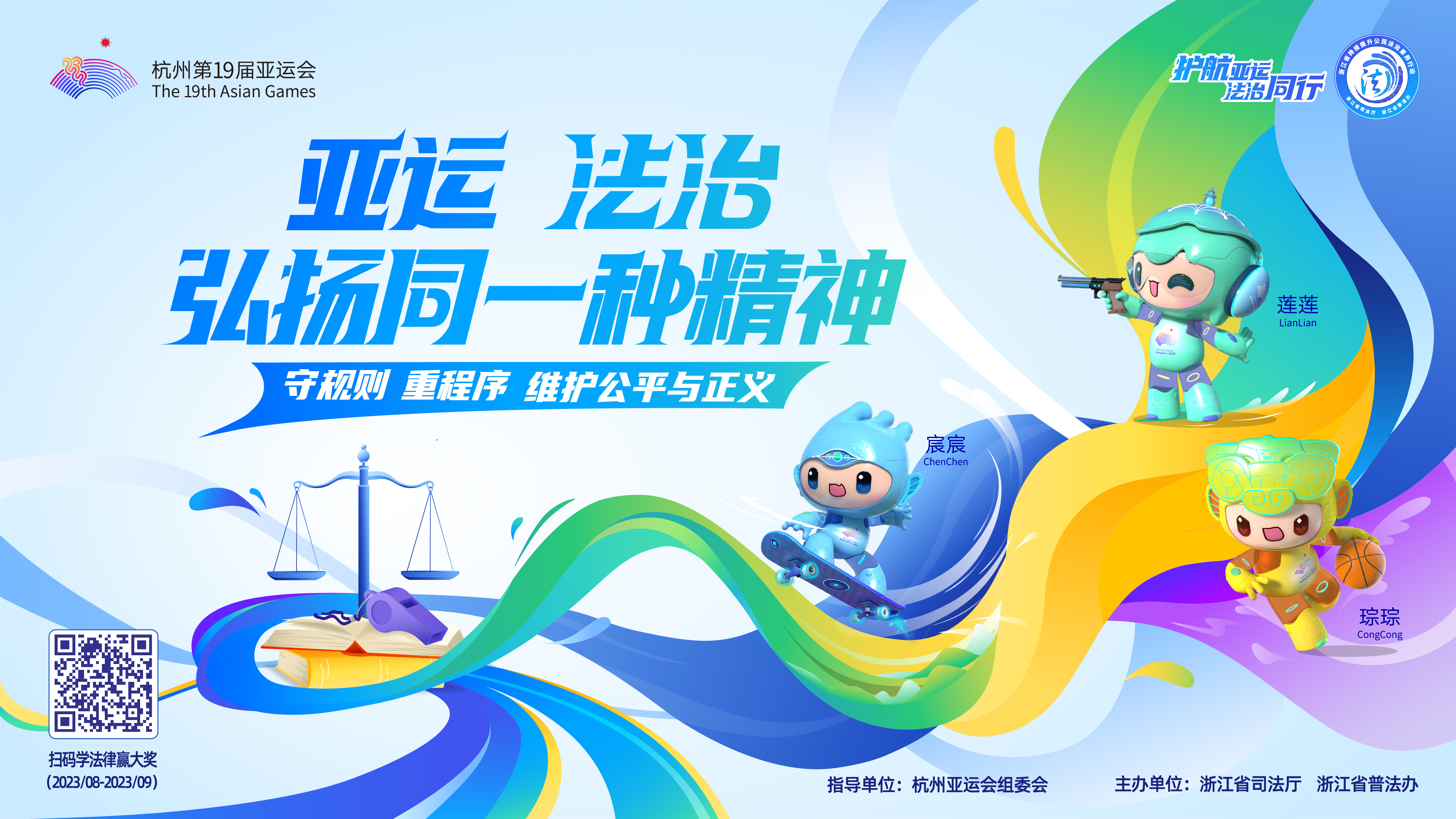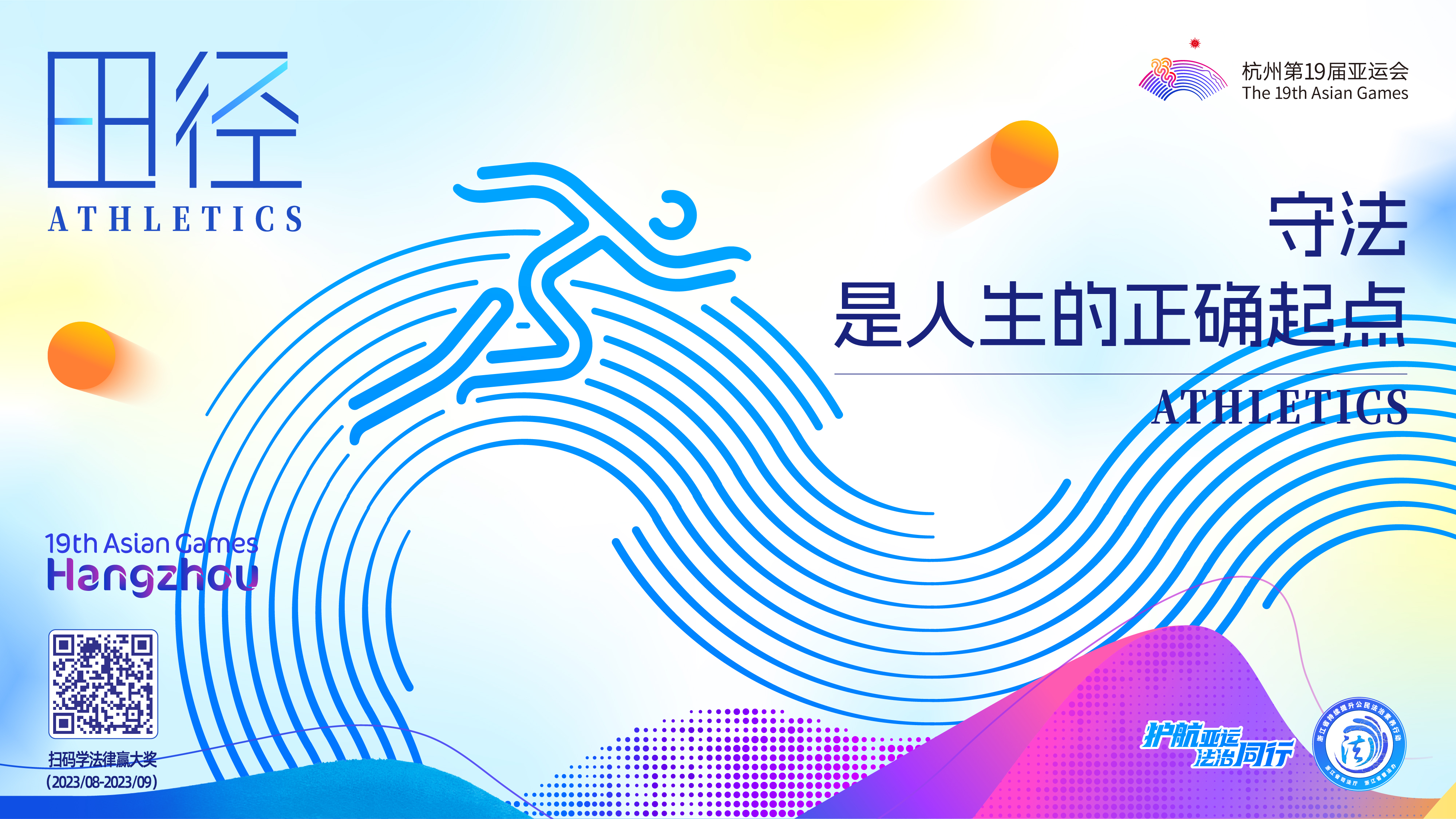 杭州第19屆亞運(yùn)會(huì)即將到來(lái),為營(yíng)造更加濃厚的法治氛圍,由杭州亞組委指導(dǎo),浙江省司法廳、省普法辦原創(chuàng)的“護(hù)航亞運(yùn) 法治同行”主題海報(bào)(一套共9張,含1張主視覺(jué)和8張配套海報(bào))正式發(fā)布,這是2023年全省持續(xù)提升公民法治素養(yǎng)行動(dòng)的特色活動(dòng)之一。